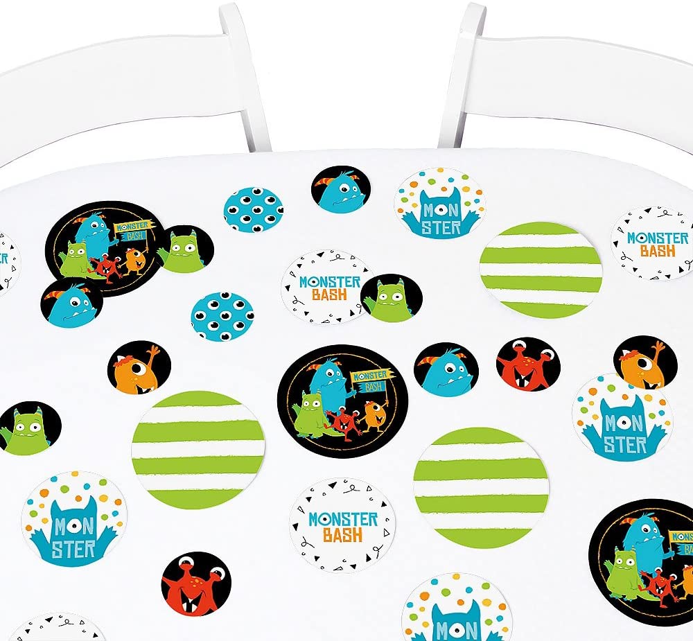• EASY TABLE DECOR: Monster Bash giant circle confetti comes in a variety of coordinating patterns in three different sizes. Scatter them down the length of your party tables, add them to centerpieces or hole-punch them and string together as a baby shower or birthday party banner. Little monster paper confetti pieces will make a statement however you choose to use them.