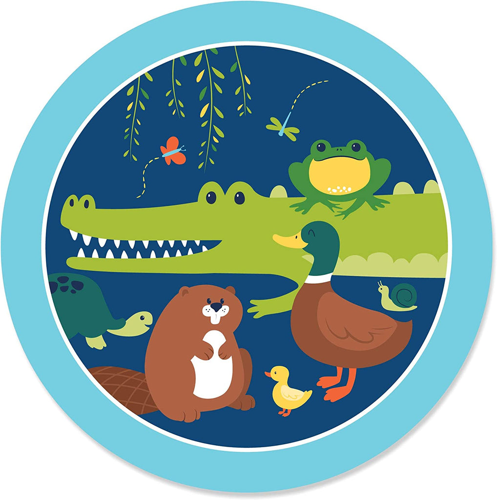 Pond Pals - Frog, Alligator, Turtle, Beaver and Duck Birthday Party or Baby Shower Circle Sticker Labels - 24 Count