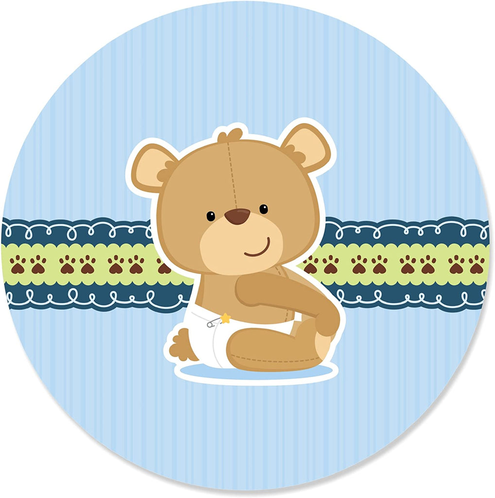 Boy Baby Teddy Bear - Baby Shower Circle Sticker Labels - 24 Count