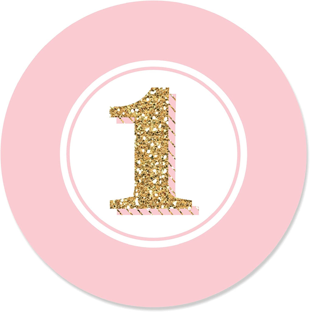 1st Birthday Girl - Fun to be One - First Birthday Party Circle Sticker Labels - 24 Count