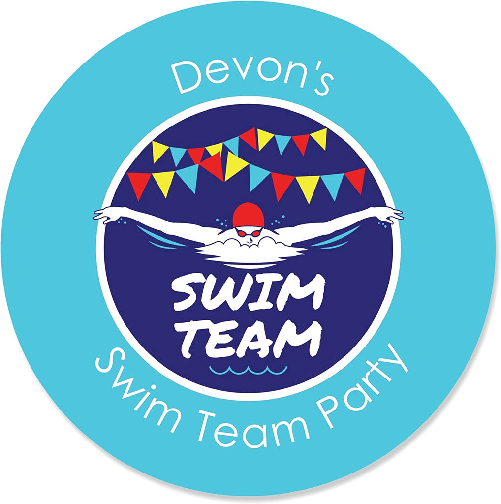 Making Waves - Swim Team - Swimming Party or Birthday Party Circle Sticker Labels - 24 Count