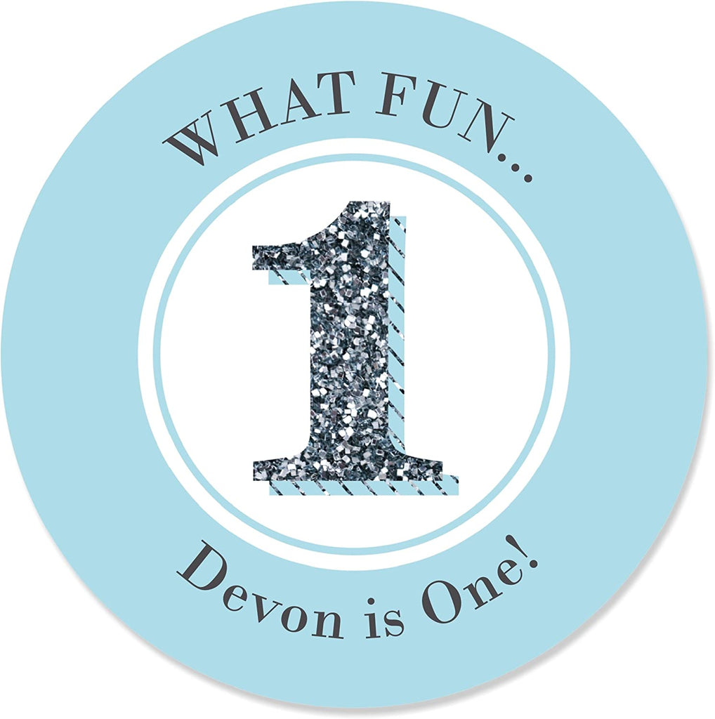 Custom Fun to be One - 1st Birthday Boy - Personalized First Birthday Party Favor Circle Sticker Labels - Set of 24