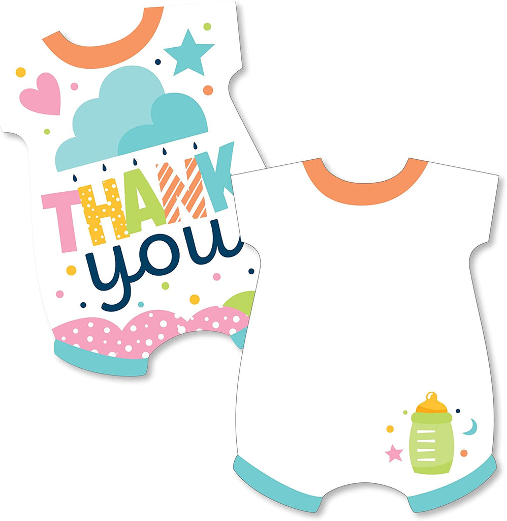 Colorful Baby Shower - Shaped Thank You Cards - Gender Neutral Party Thank You Note Cards with Envelopes - Set of 12