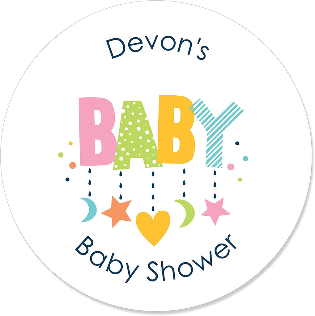 Personalized Colorful Baby Shower - Custom Gender Neutral Party Favor Circle Sticker Labels - Custom Text - 24 Count