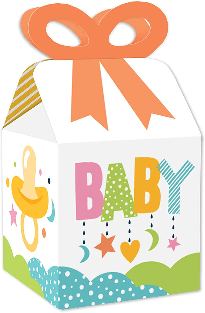 Colorful Baby Shower - Square Favor Gift Boxes - Gender Neutral Party Bow Boxes - Set of 12