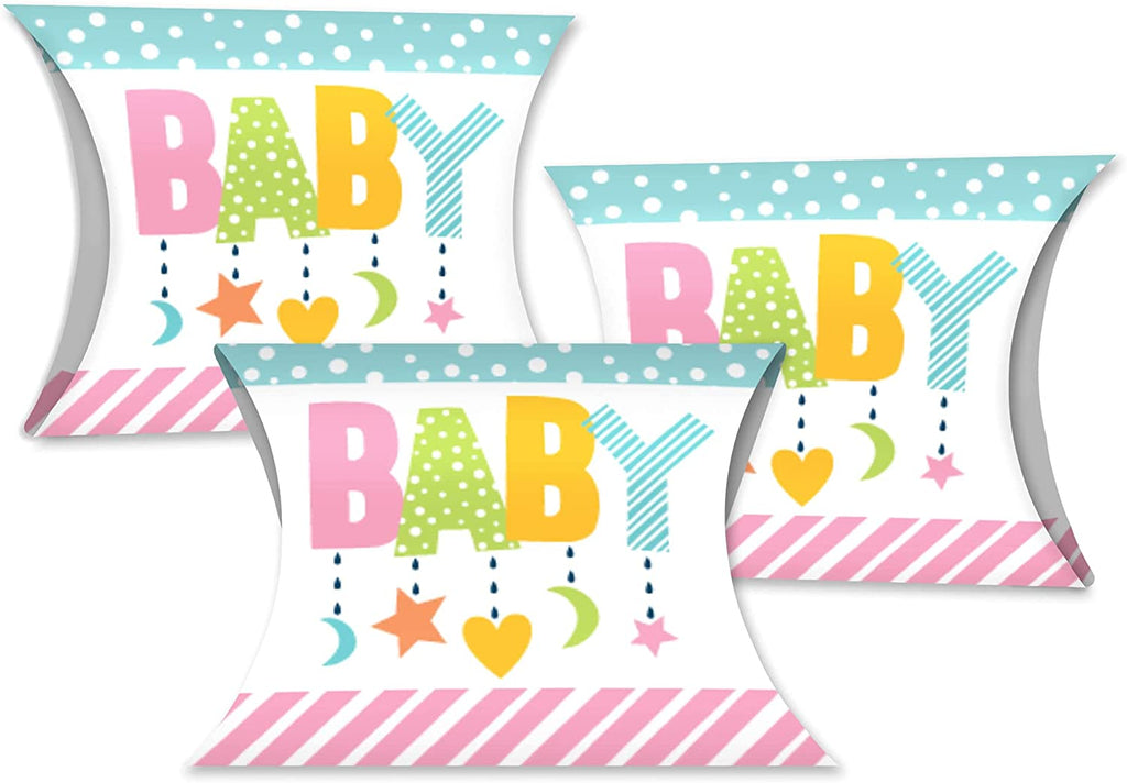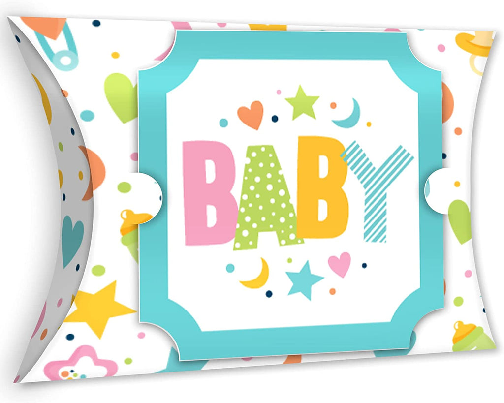 Colorful Baby Shower - Favor Gift Boxes - Gender Neutral Party Large Pillow Boxes - Set of 12