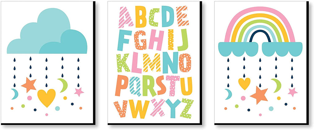 Colorful Children’s Decor - Alphabet Nursery Wall Art and Rainbow Cloud Kids Room Decor - 7.5 x 10 inches - Set of 3 Prints