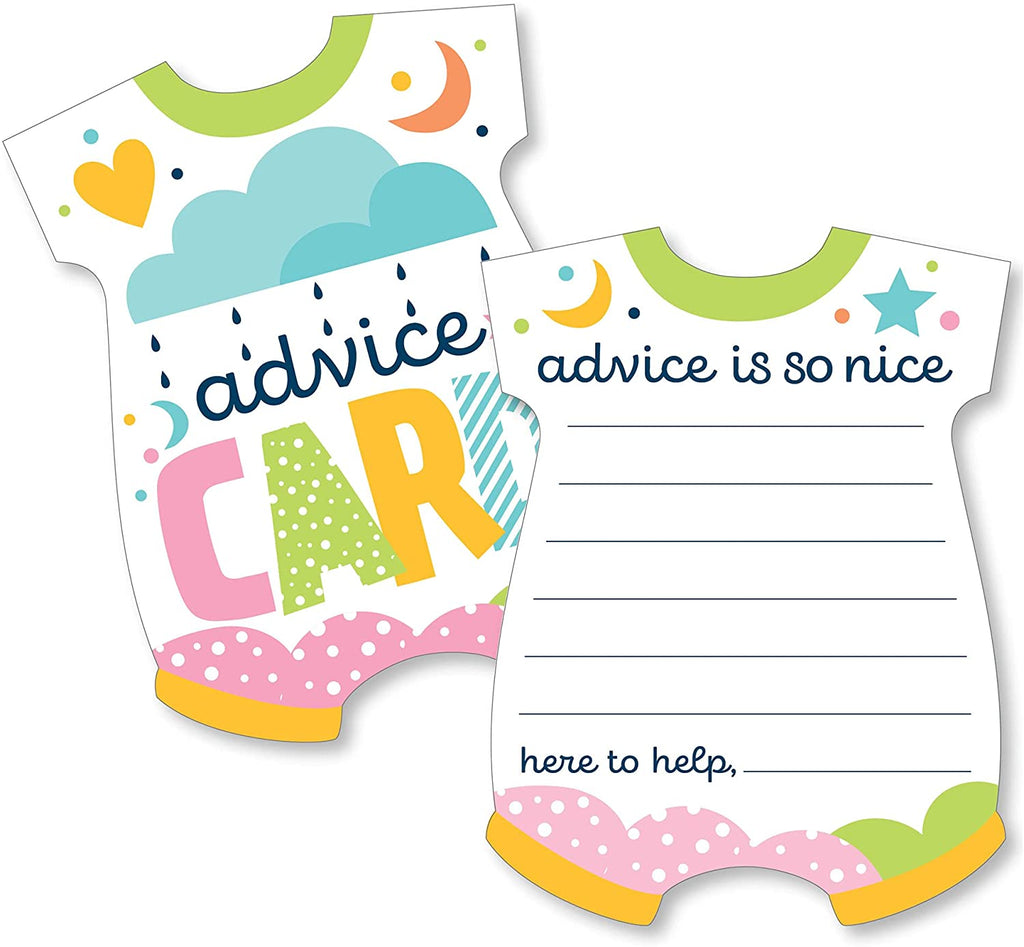 Colorful Baby Shower - Baby Bodysuit Wish Card Gender Neutral Baby Shower Activities - Shaped Advice Cards Game - Set of 20