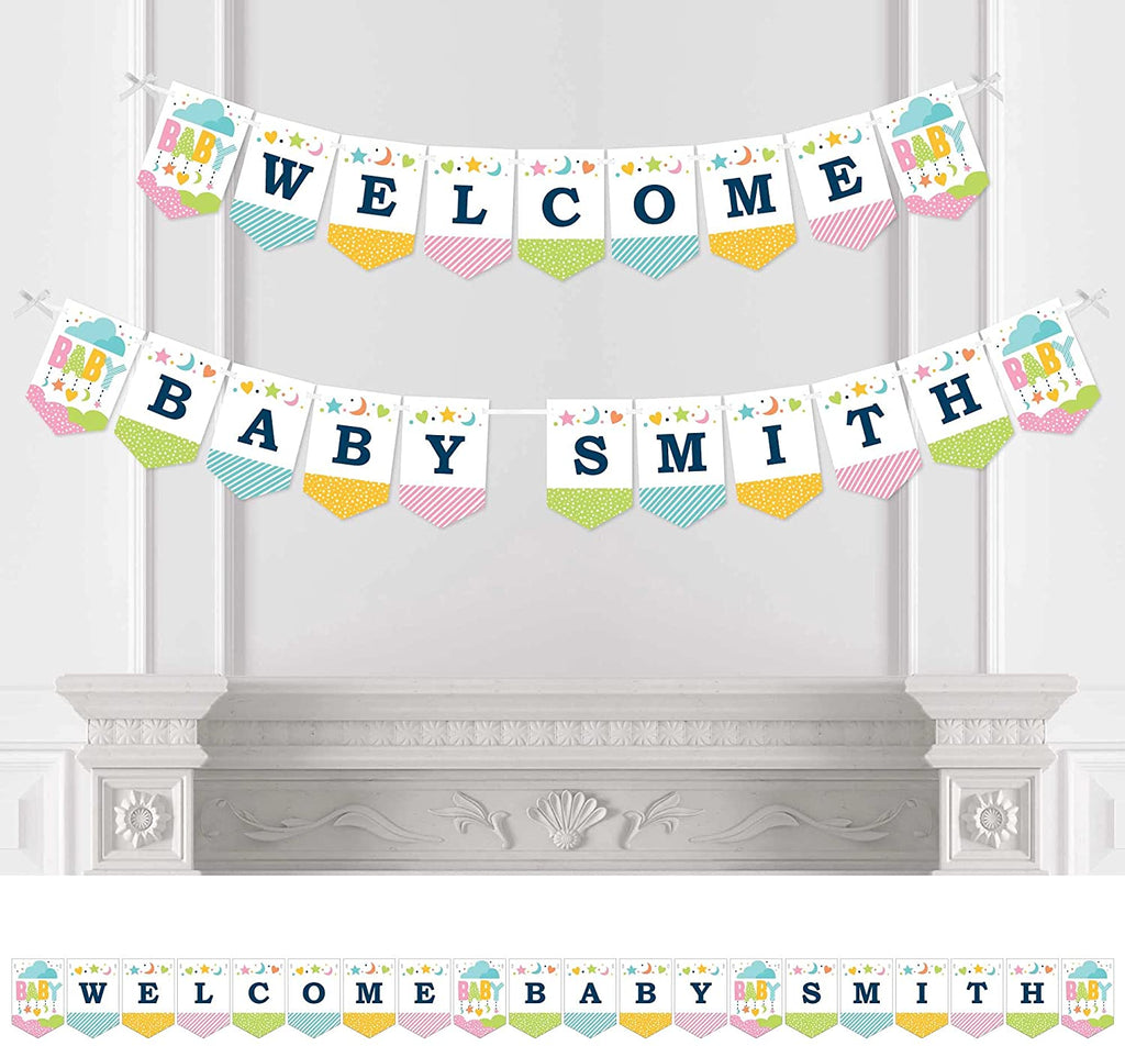 Personalized Colorful Baby Shower - Custom Gender Neutral Baby Shower Bunting Banner and Decorations - Welcome Baby Custom Name Banner