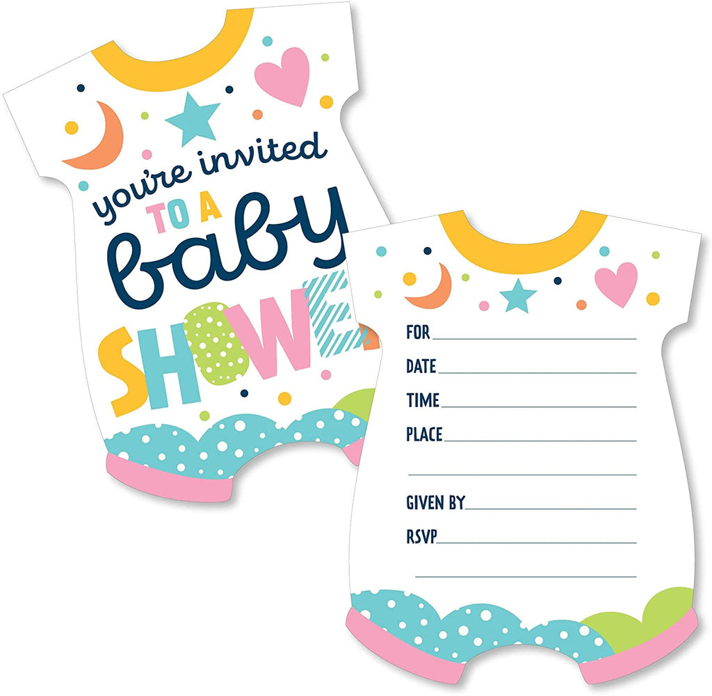 Colorful Baby Shower - Shaped Fill-In Invitations - Gender Neutral Party Invitation Cards with Envelopes - Set of 12