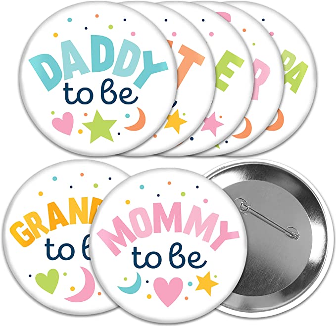 Colorful Baby Shower - 3 inch Gender Neutral Party Badge - Pinback Buttons - Set of 8