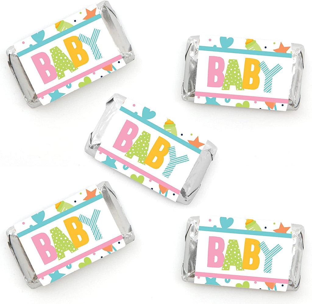 Colorful Baby Shower - Mini Candy Bar Wrapper Stickers - Gender Neutral Party Small Favors - 40 Count