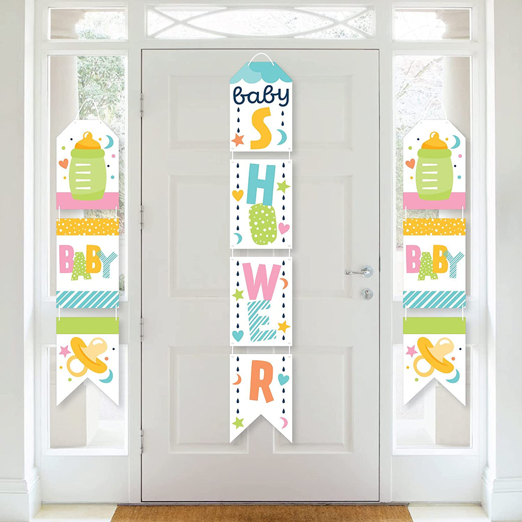 Colorful Baby Shower - Hanging Vertical Paper Door Banners - Gender Neutral Party Wall Decoration Kit - Indoor Door Decor