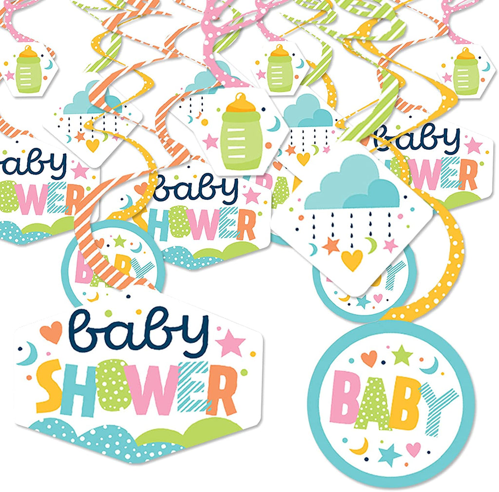 Colorful Baby Shower - Gender Neutral Party Hanging Decor - Party Decoration Swirls - Set of 40