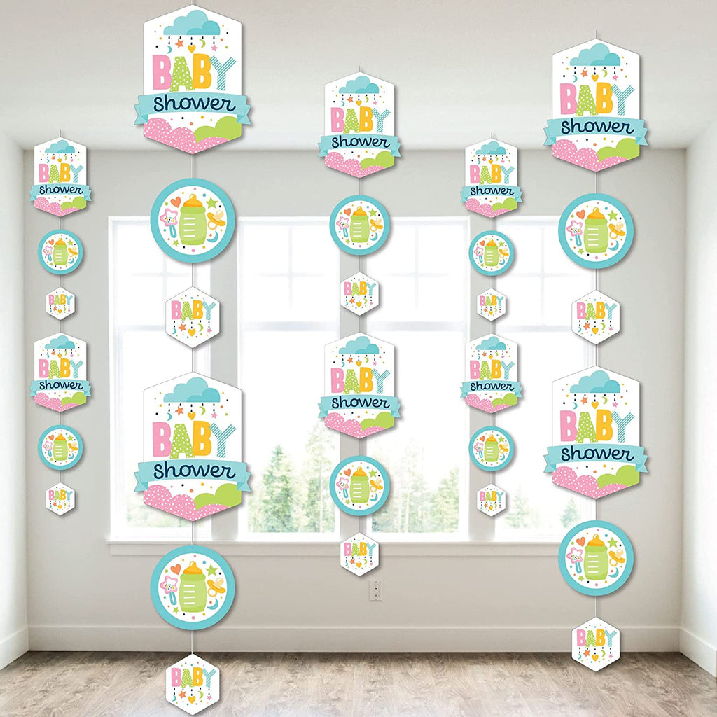 Colorful Baby Shower - Gender Neutral Party DIY Dangler Backdrop - Hanging Vertical Decorations - 30 Pieces