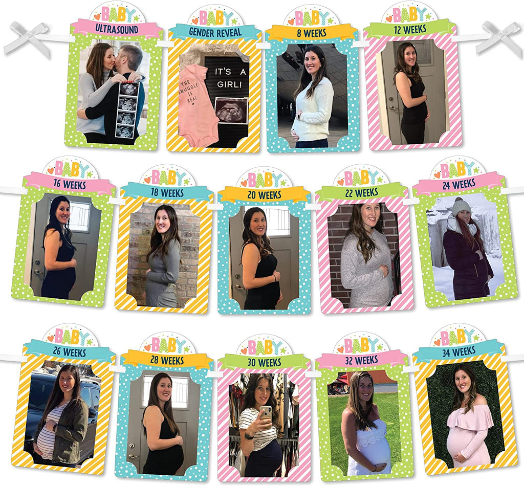 Colorful Baby Shower - DIY Baby Shower Decor - Weekly Pregnancy Picture Display - Photo Banner