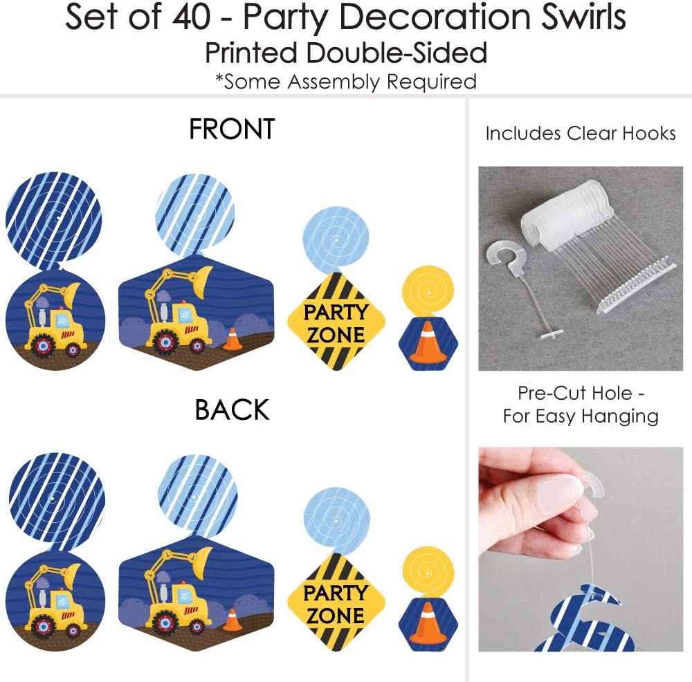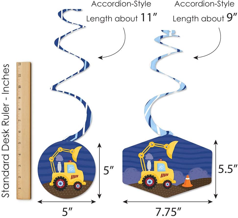 • HIGH-QUALITY PARTY SUPPLY: Construction Truck Party Decoration Swirls are professionally printed and double-sided on heavy-duty cardstock paper. They are individually cut, inspected, and carefully packaged. Each swirl will use one clear hook.