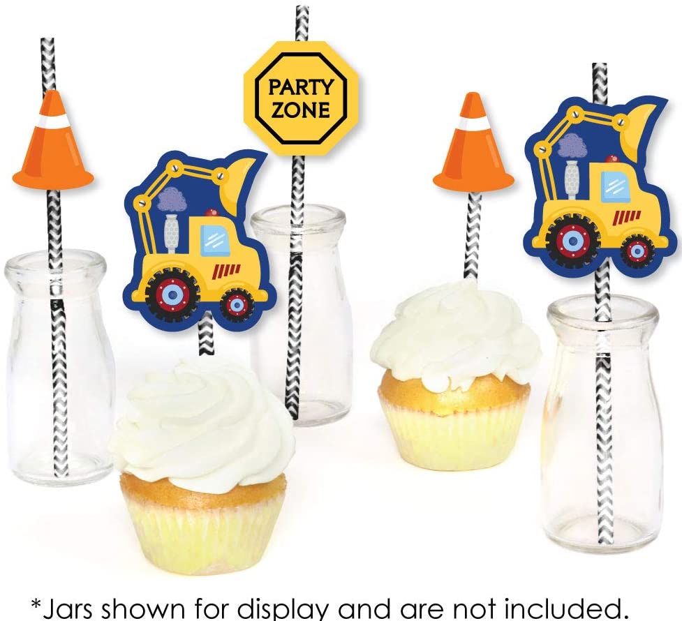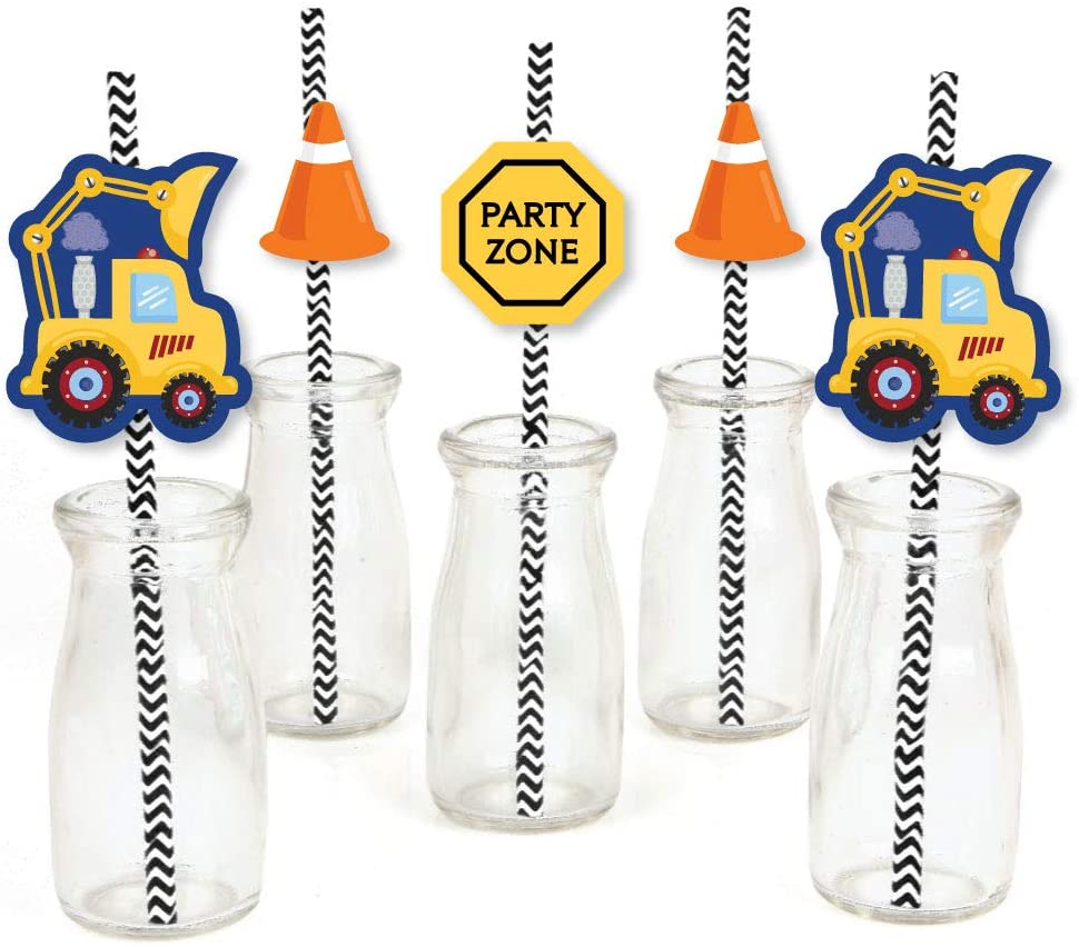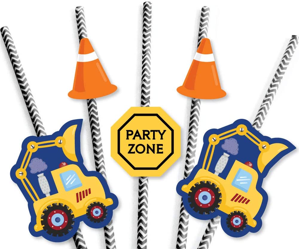 Construction Truck Paper Straw Decor - Baby Shower or Birthday Party Striped Decorative Straws - Set of 24 is backordered and will ship as soon as it is back in stock.