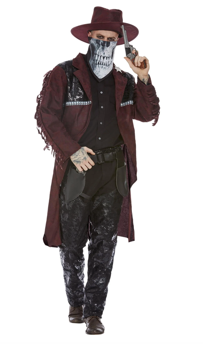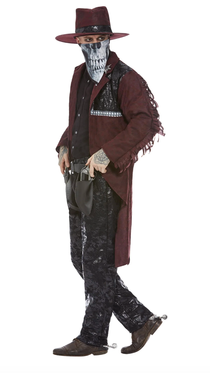 Mens Deluxe Dark Spirit Western Cowboy Costume, Burgundy