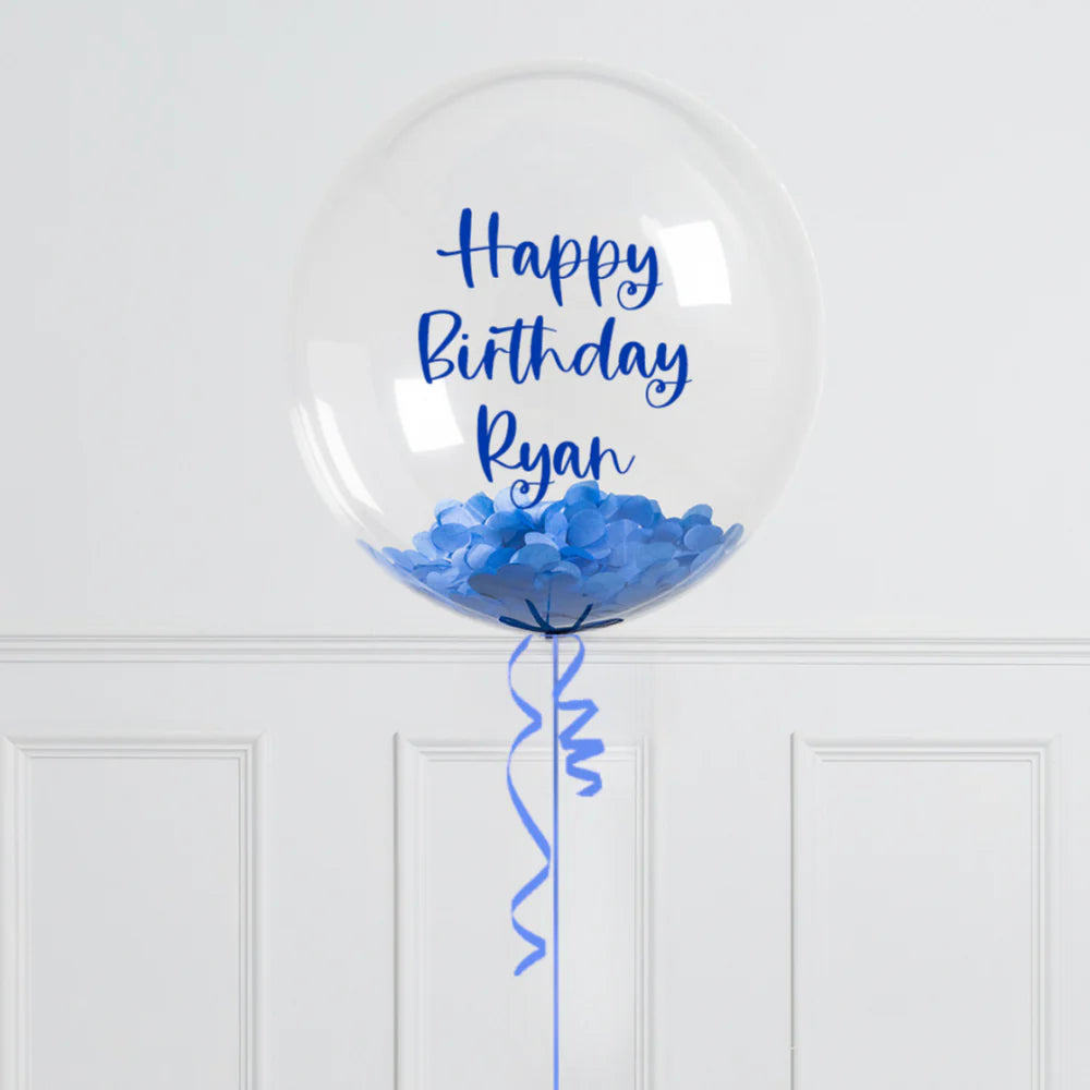 Personalised Bubble Balloon – 24 Inch - Blue Confetti - With Helium is backordered and will ship as soon as it is back in stock.