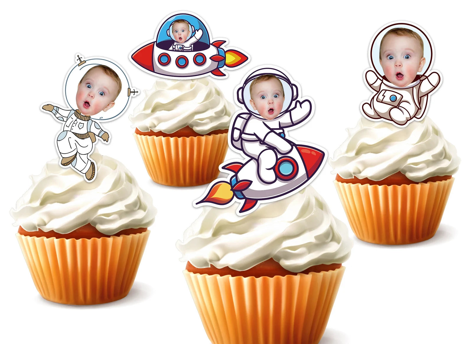 Outer Space Astronaut - Cupcake Decoration - Custom Photo - Cupcake Toppers and Treat Picks Kit - Set of 18 is backordered and will ship as soon as it is back in stock.
