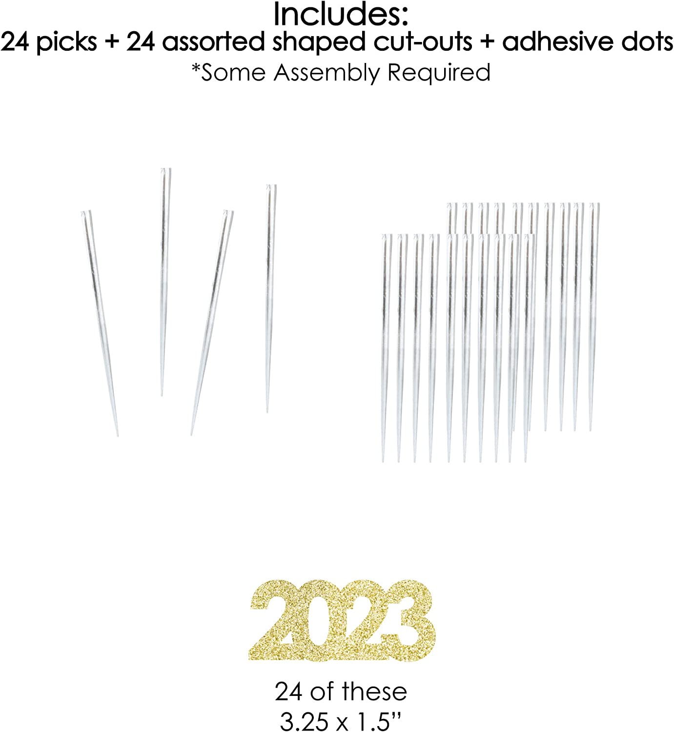 • EASY ASSEMBLY INSTRUCTIONS INCLUDED: Clear treat picks and Gold Glitter 2023 shaped cutouts will ship with easy assembly instructions to create unique dessert cupcake toppers. Gold glitter 2023 shape confetti uses NO-MESS Real Gold Glitter Paper with white reverse side, eliminating glitter flake while maximizing bling effect!