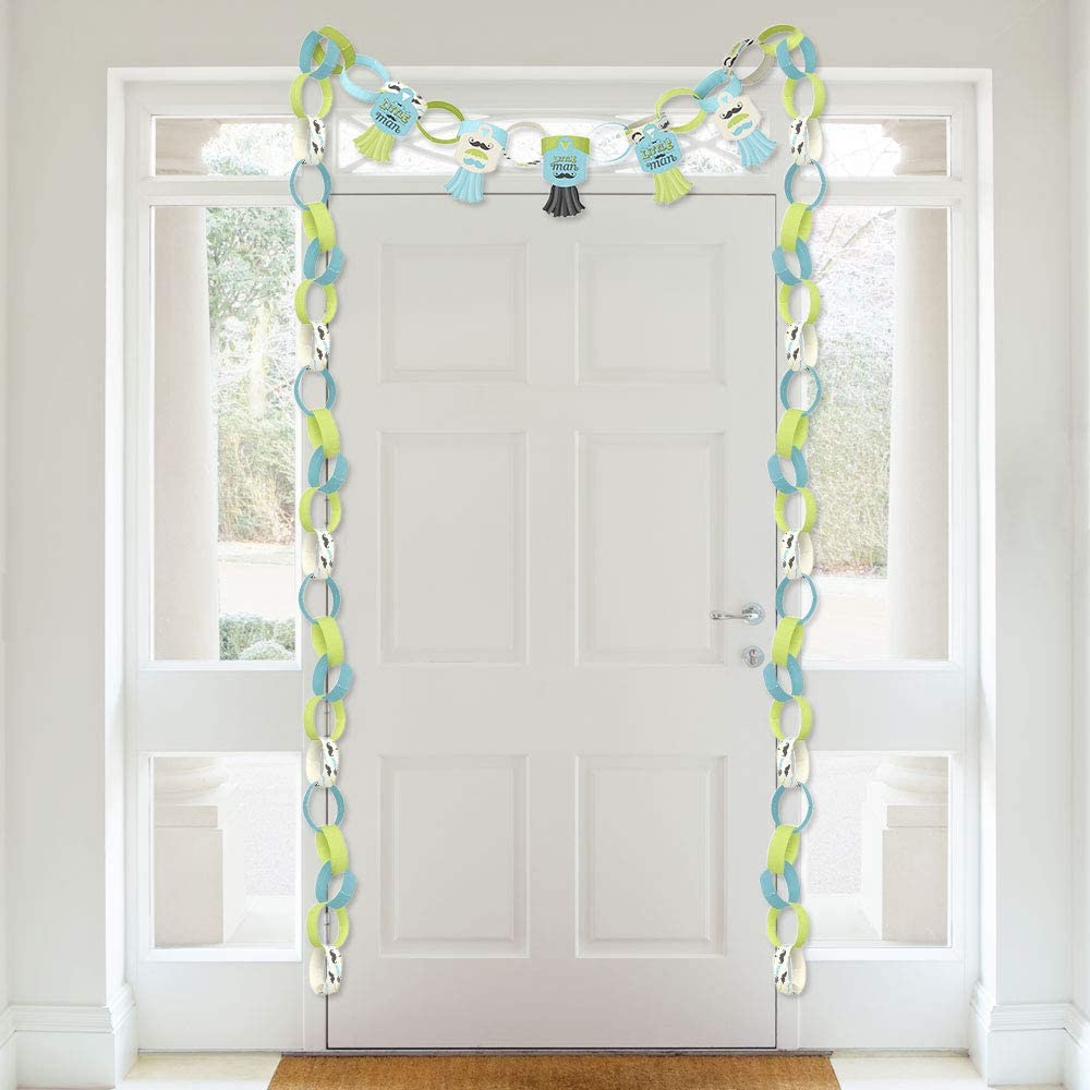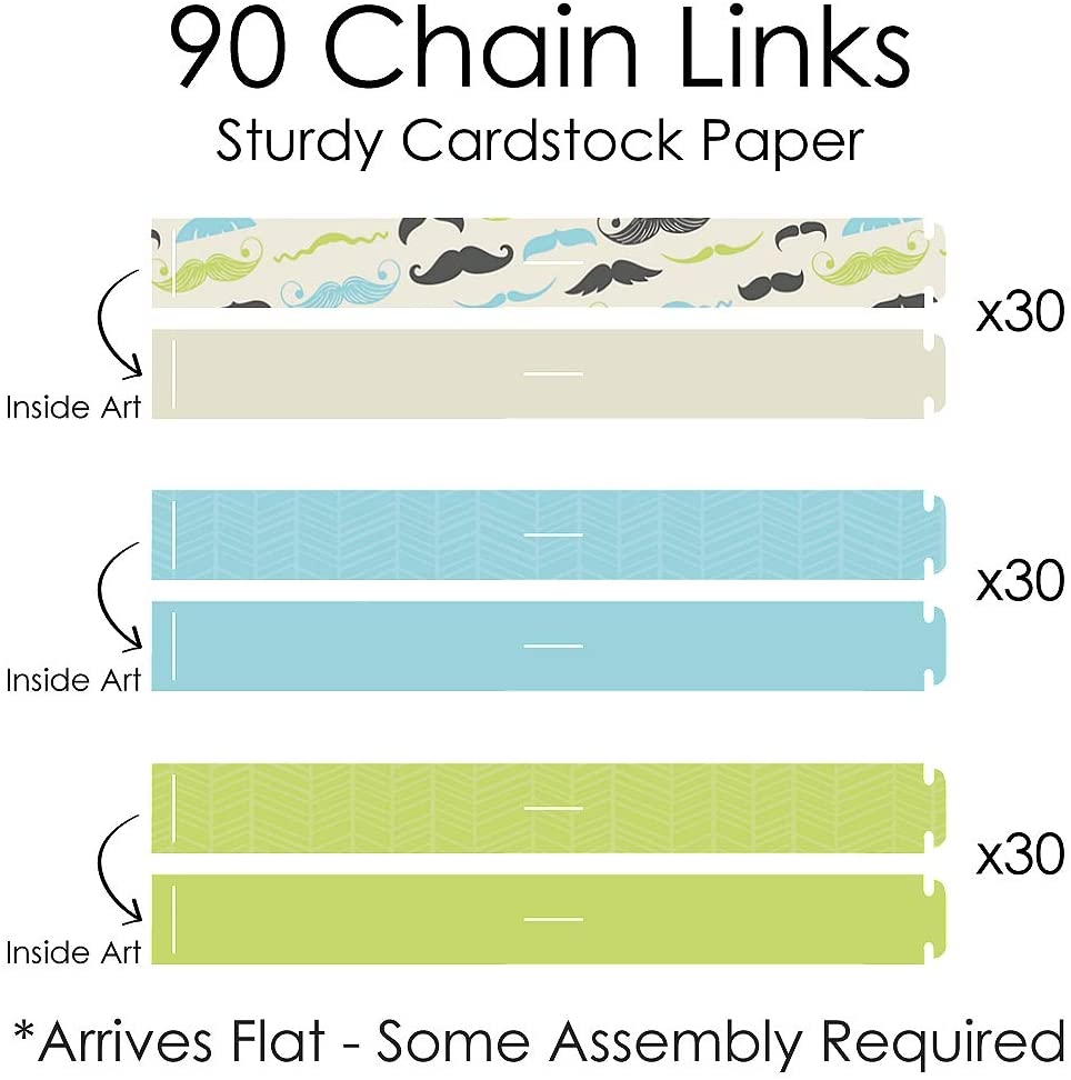 • PREMIUM PARTY DECORATION: Paper chain decorations are professionally printed and double-sided on sturdy cardstock paper, with a photo-like shine. They are then individually cut, inspected, and carefully packaged. Dashing Little Man Mustache Party paper chains garland is a DIY kit that can be used in many ways. Get inspired with this fun do-it-yourself baby shower or birthday party decor kit!