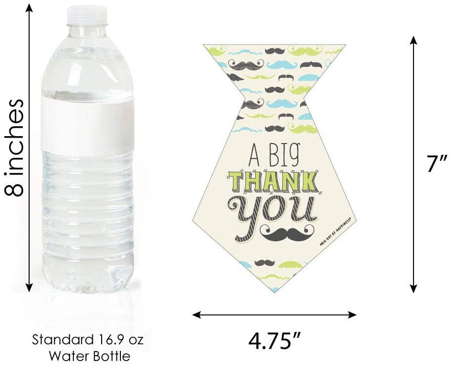 • Shaped Thank You Cards Set INCLUDES 12 Dashing Little Man Mustache Party baby shower or birthday party thank you cards and 12 premium white envelopes. Dashing Little Man Mustache Party Shaped Thank You Cards are the perfect end to any event.