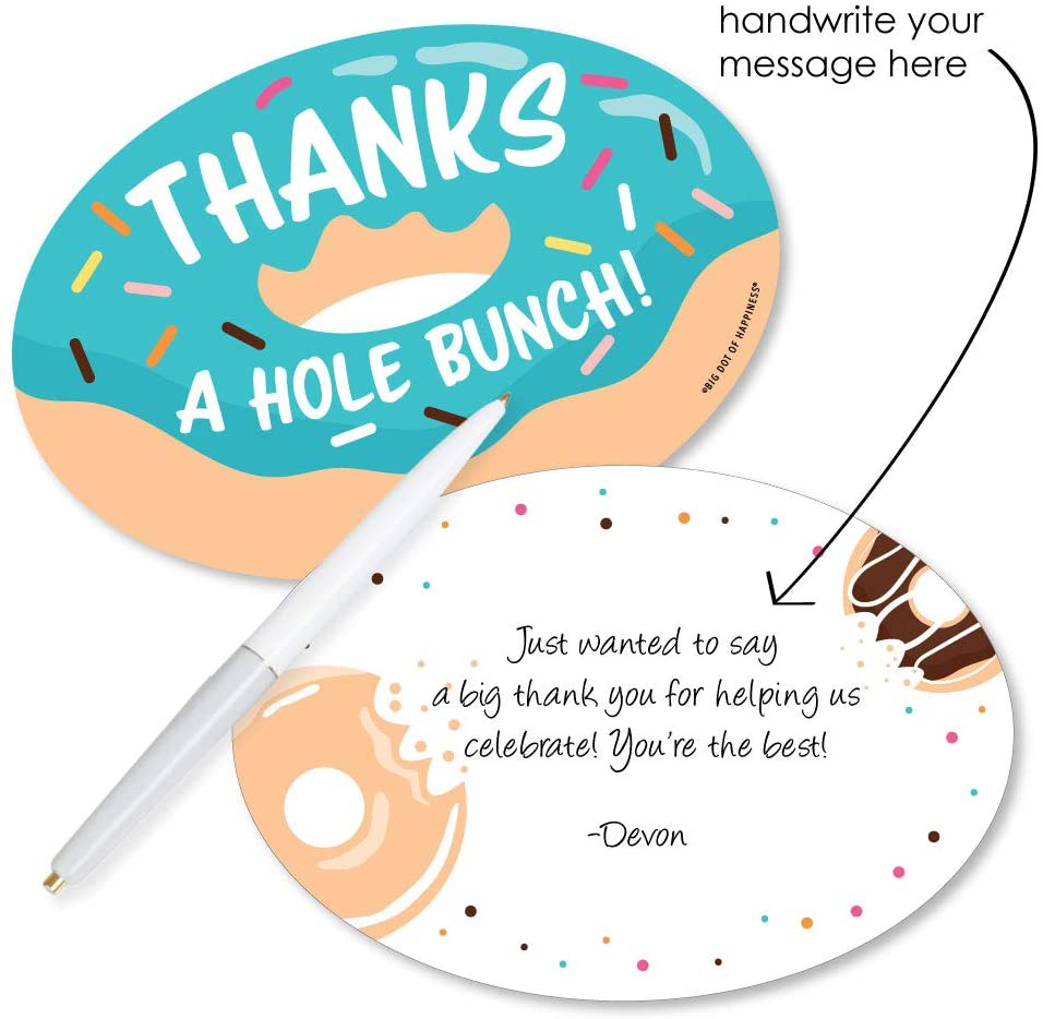 Donut Worry, Let's Party - Shaped Thank You Cards - Doughnut Party Thank You Note Cards with Envelopes - Set of 12 is backordered and will ship as soon as it is back in stock.