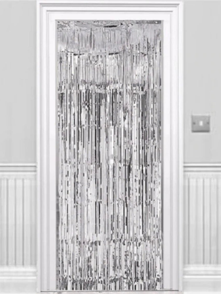Silver Metallic Fringed Doorway Curtain 1x3M