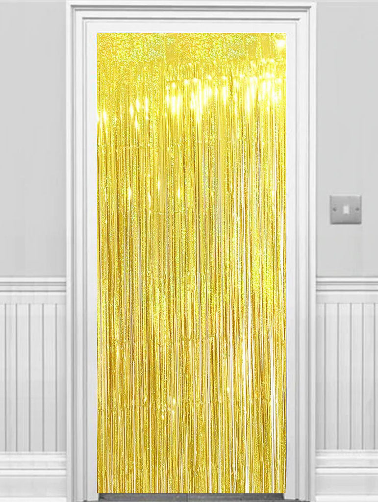 6.5Ft Metallic Gold Foil Fringe Curtains Iridescent Fringe