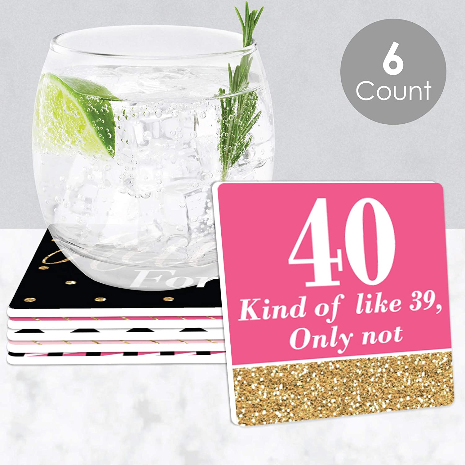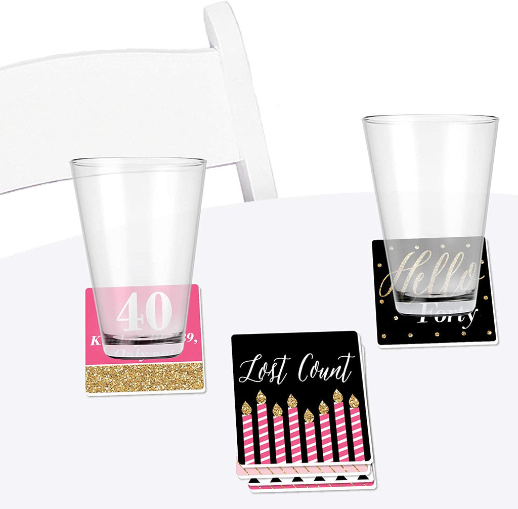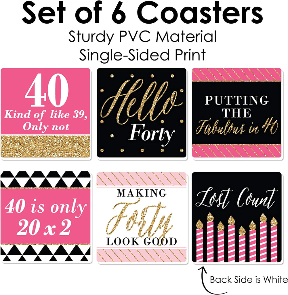 Chic 40th Birthday - Pink, Black and Gold - Funny Birthday Party Decorations - Drink Coasters - Set of 6 is backordered and will ship as soon as it is back in stock.