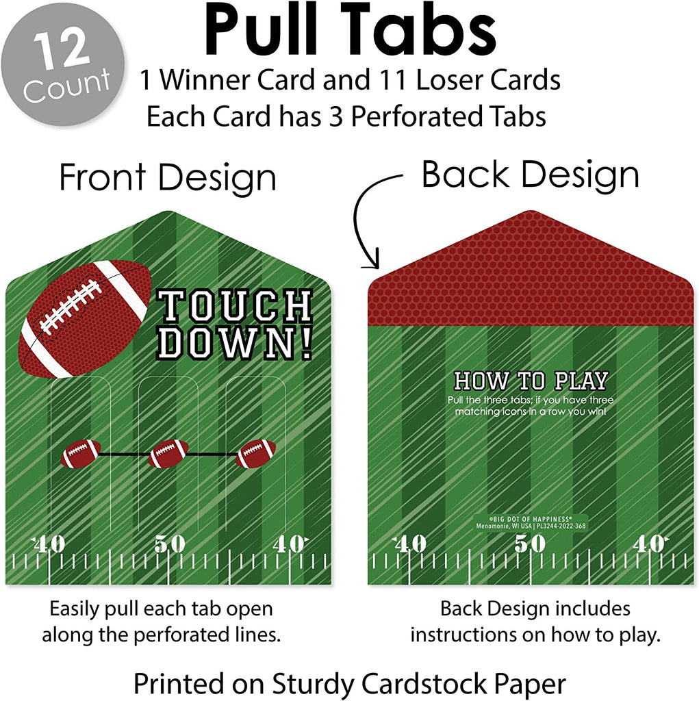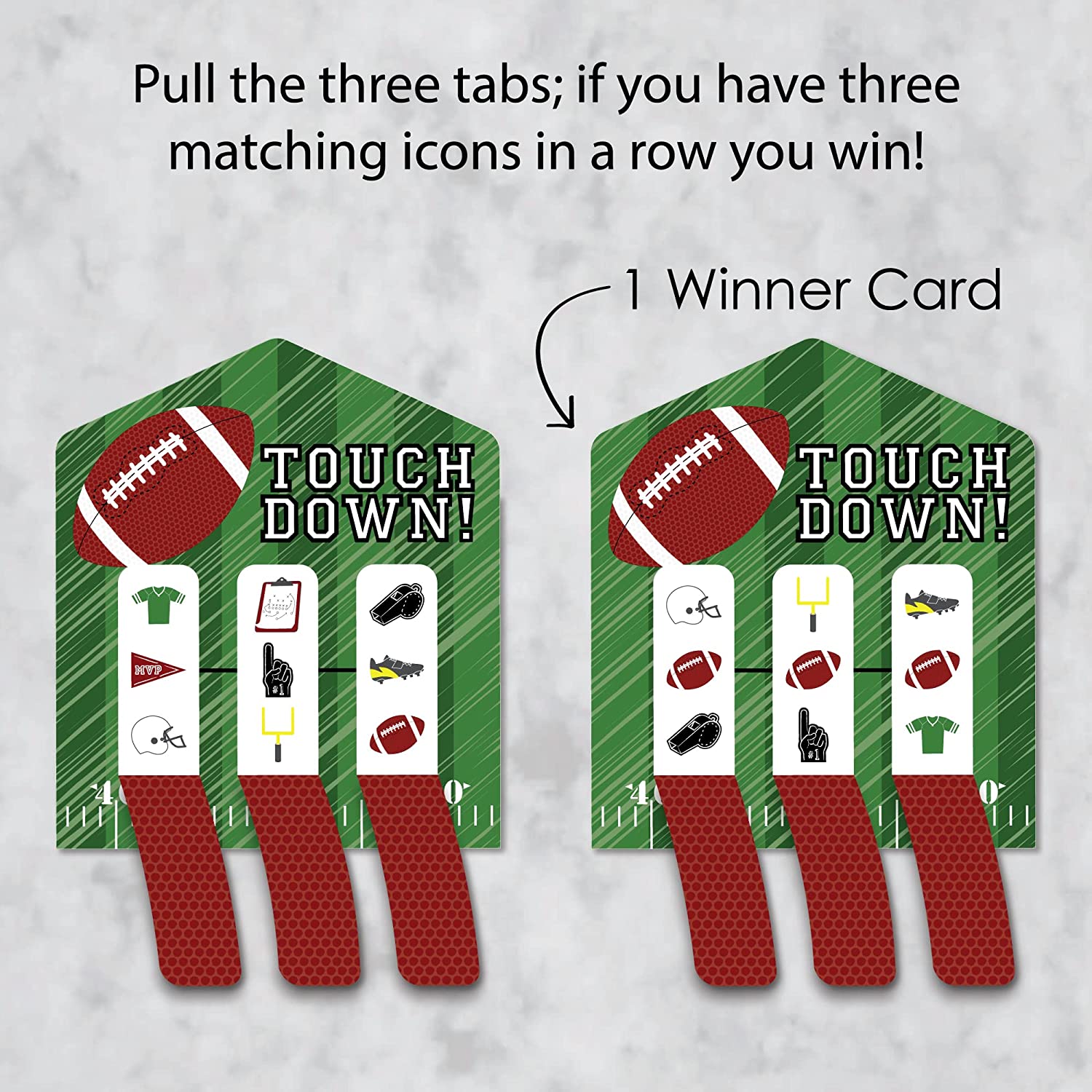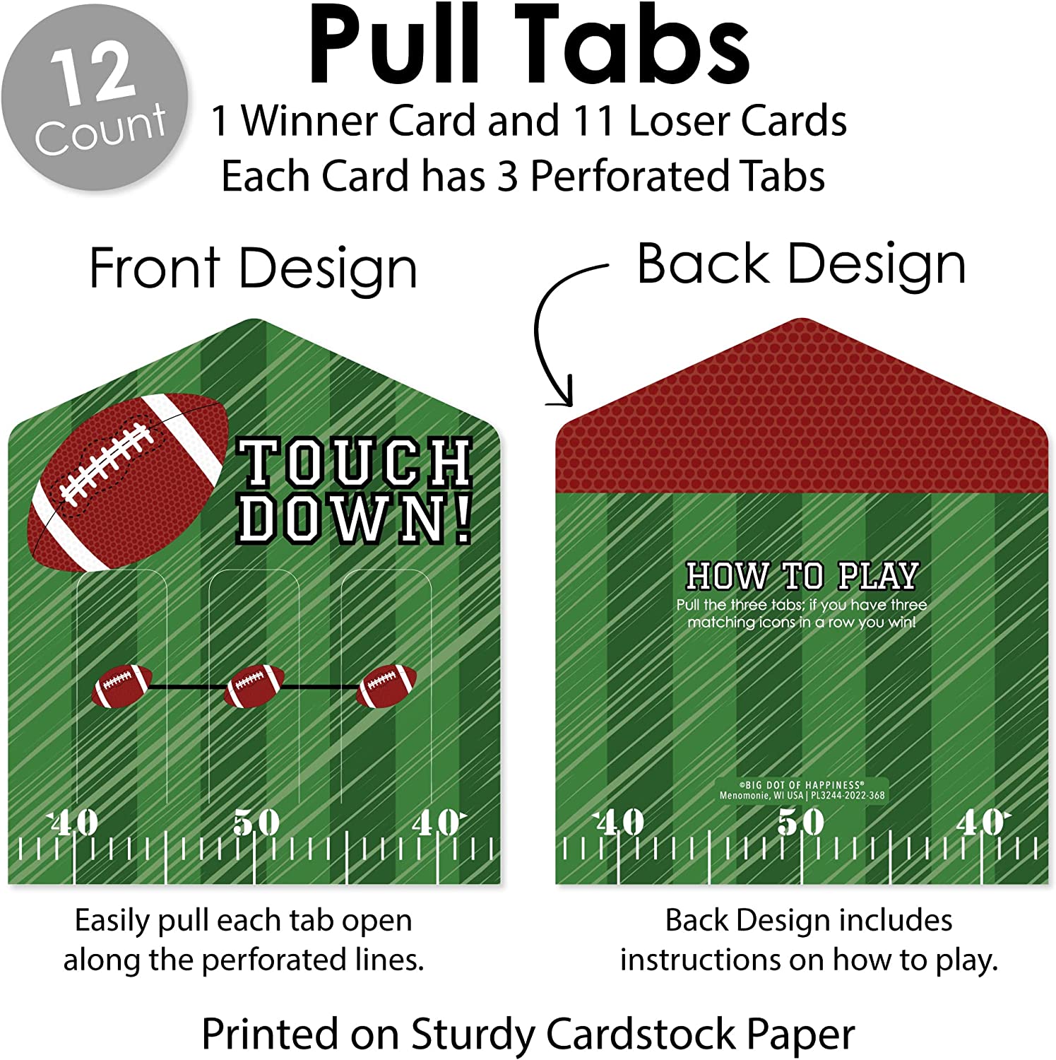 End Zone - Football - Baby Shower or Birthday Party Game Pickle Cards - Pull Tabs 3-in-a-Row - Set of 12 is backordered and will ship as soon as it is back in stock.