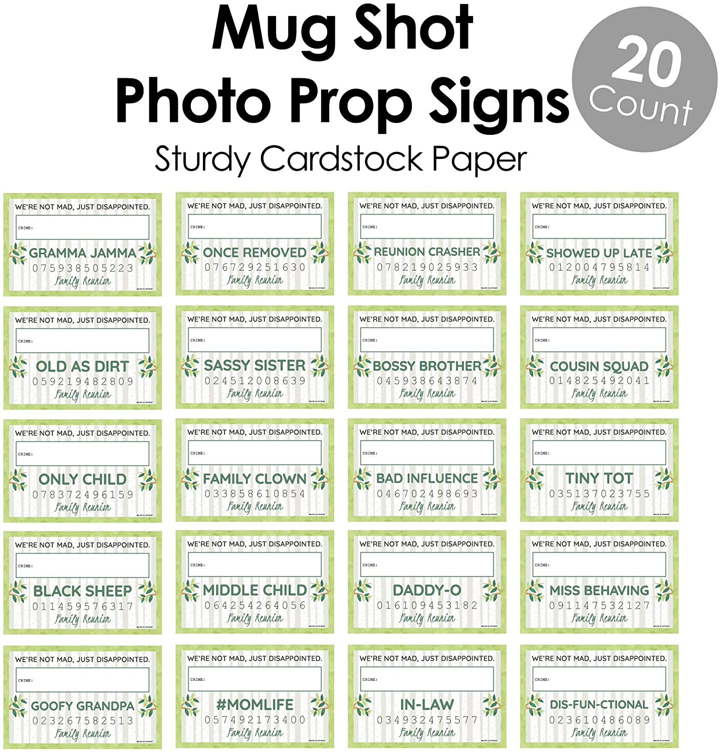 Family Tree Reunion - Family Gathering Party Mug Shots - Photo Booth Props Kit - 20 Count is backordered and will ship as soon as it is back in stock.