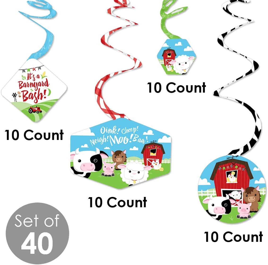 Farm Animals - Barnyard Baby Shower or Birthday Party Hanging Decor - Party Decoration Swirls - Set of 40 is backordered and will ship as soon as it is back in stock.