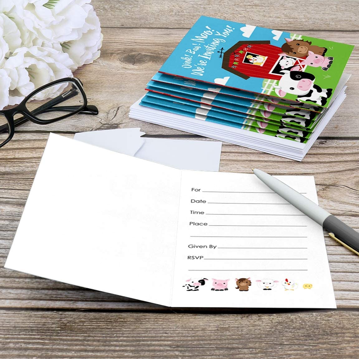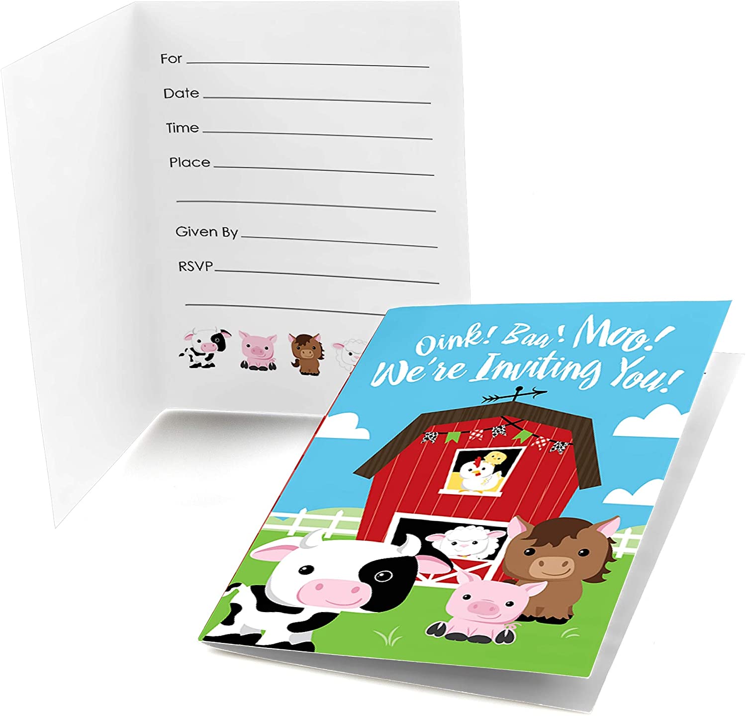 Farm Animals - Fill In Baby Shower or Birthday Party Invitations (8 count) is backordered and will ship as soon as it is back in stock.