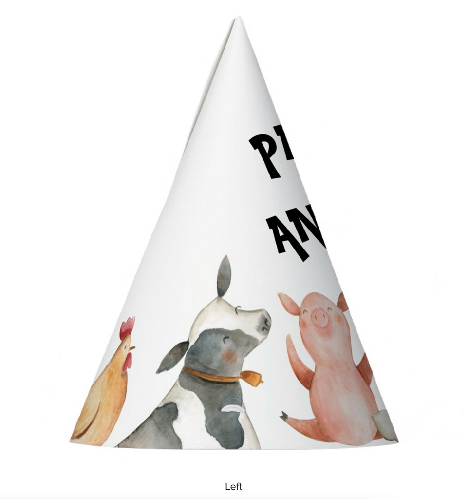Farm Animals Party Hats - Set of 8