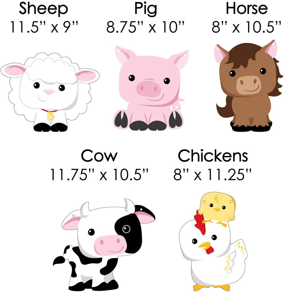 • PERFECT FOR ANY LOCATION! Farm Animals - outdoor yard decorations MEASURE 11.5 inches x 9 inches (Sheep); 8.27 inches x 10 inches (Pig); 8 inches x 10.5 inches (Horse); 11.75 inches x 10.5 inches (Cow); 8 inches x 11.25 inches (Chickens). Farm animals yard decor can be hung from trees and porches. Set of 10 Farm Animals - Barnyard hanging decorations are also easy party decorations for indoors when hung from ceilings at school, work or home.