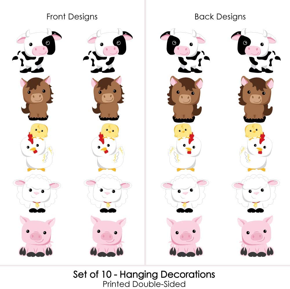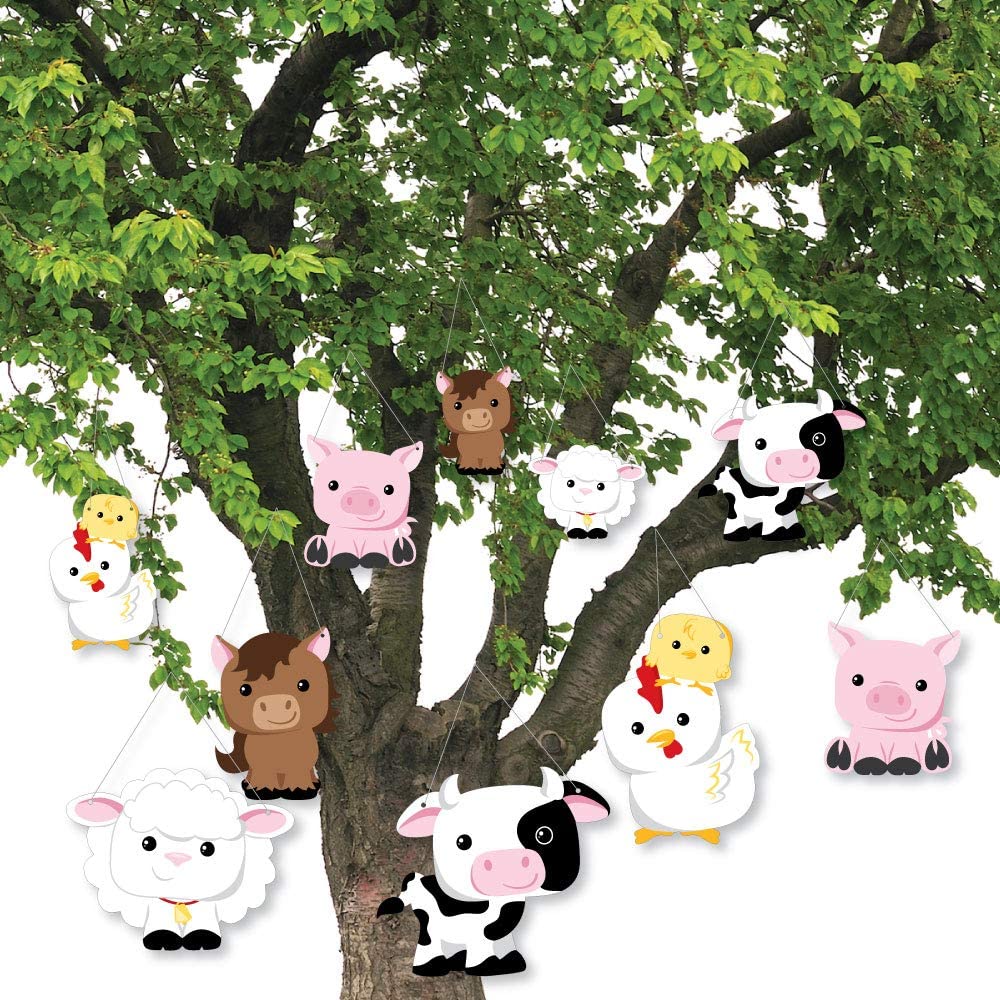 Hanging Farm Animals - Outdoor Barnyard Baby Shower or Birthday Party Hanging Porch & Tree Yard Decorations - 10 Pieces