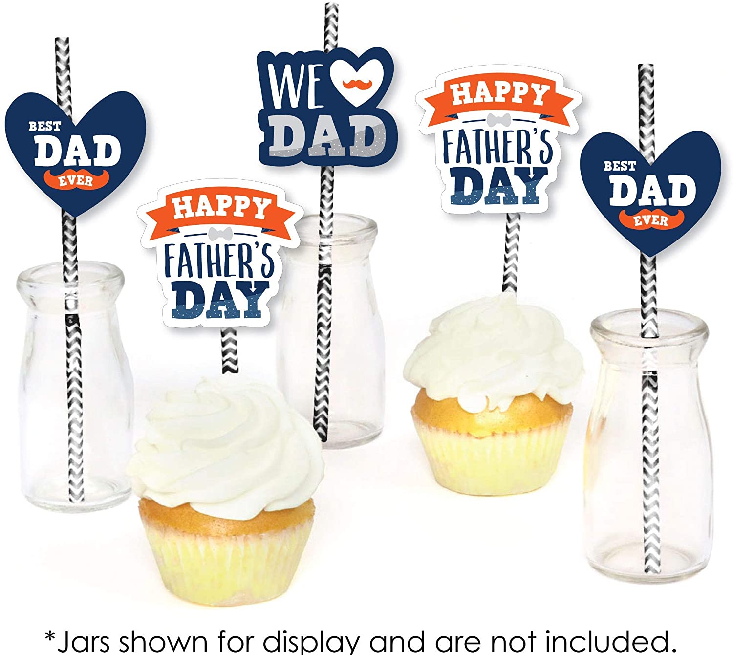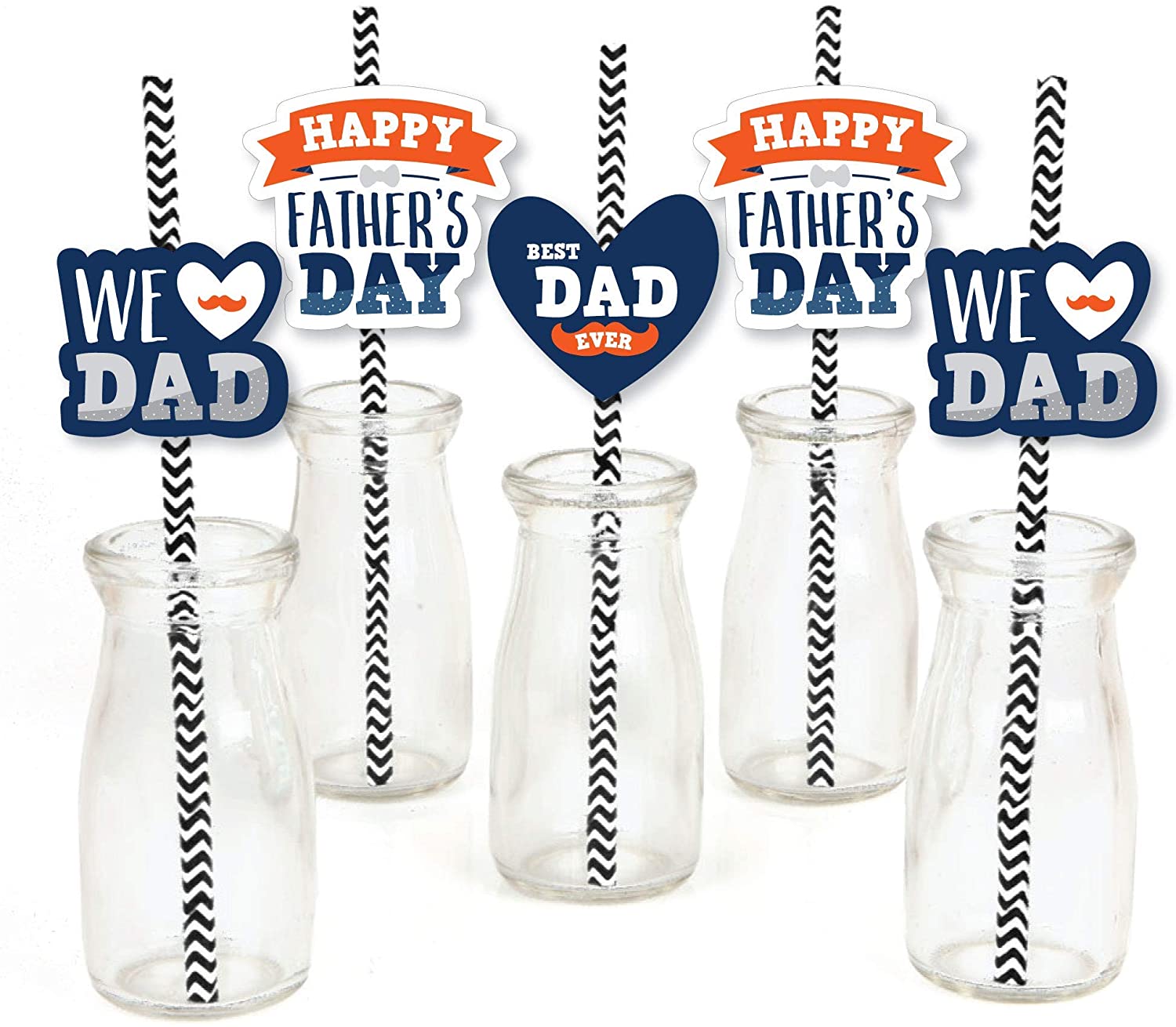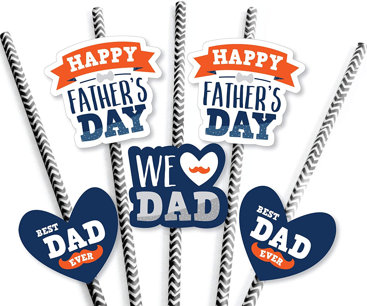 Happy Father's Day - Paper Straw Decor - We Love Dad Party Striped Decorative Straws - Set of 24 is backordered and will ship as soon as it is back in stock.