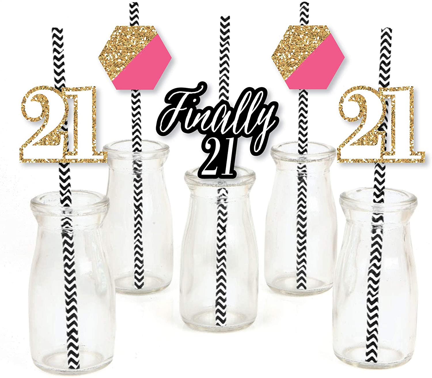 Finally 21 Girl Paper Straw Decor - 21st Birthday Party Striped Decorative Straws - Set of 24 is backordered and will ship as soon as it is back in stock.