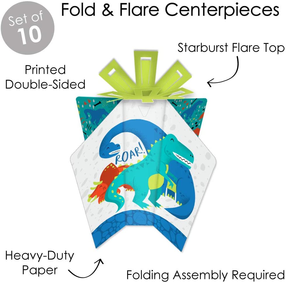 Roar Dinosaur - Table Decorations - Dino Mite Trex Baby Shower or Birthday Party Fold and Flare Centerpieces - 10 Count
