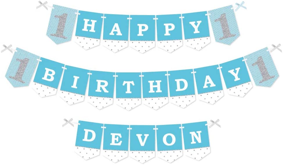 Custom Fun to be One - 1st Birthday Boy - Personalized First Birthday Party Bunting Banner & Decoration - Happy Birthday Custom Name Banner