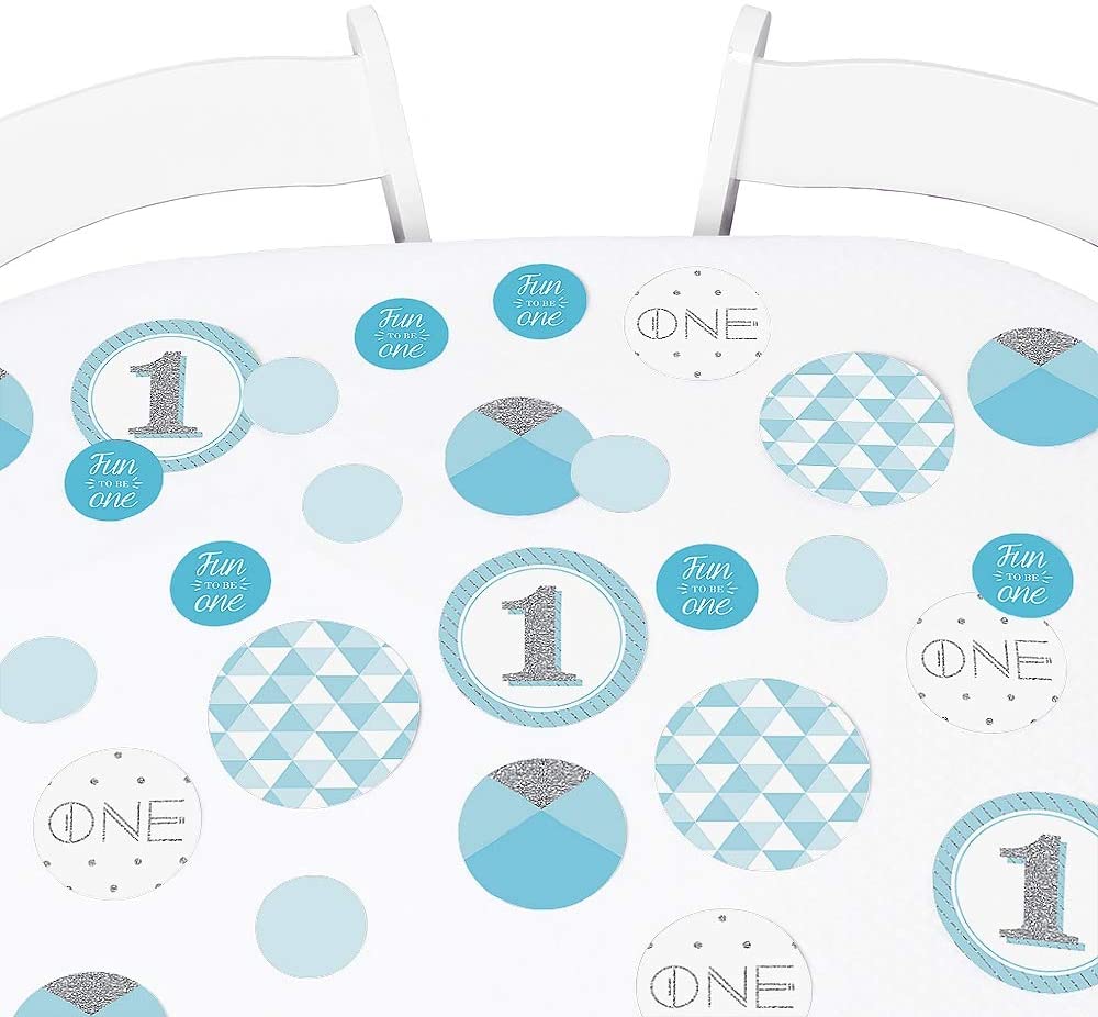 1st Birthday Boy - Fun to be One - First Birthday Party Giant Circle Confetti - Party Decorations - Large Confetti 27 Count