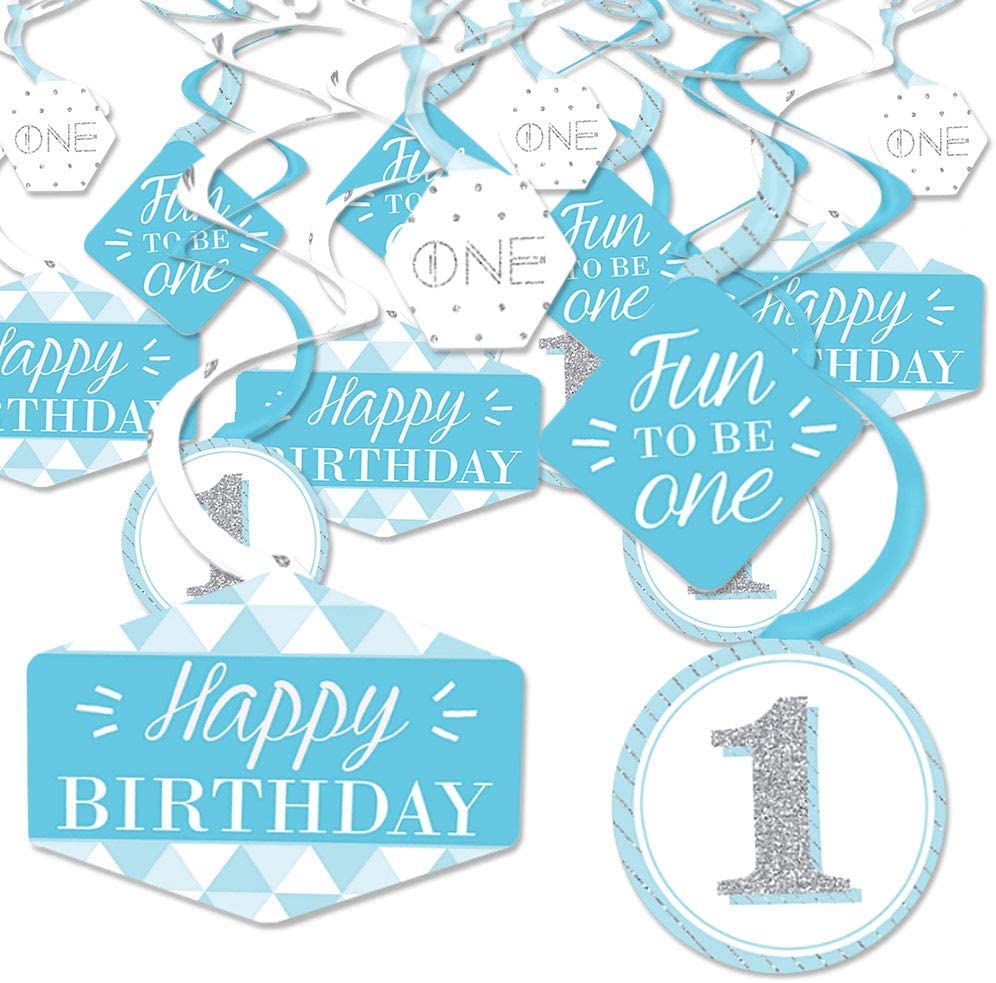 1st Birthday Boy - Fun to be One - First Birthday Party Hanging Decor - Party Decoration Swirls - Set of 40