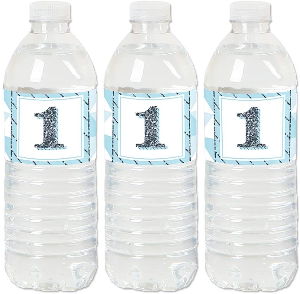 1st Birthday Boy - Fun to be One - First Birthday Party Water Bottle Sticker Labels - Set of 20