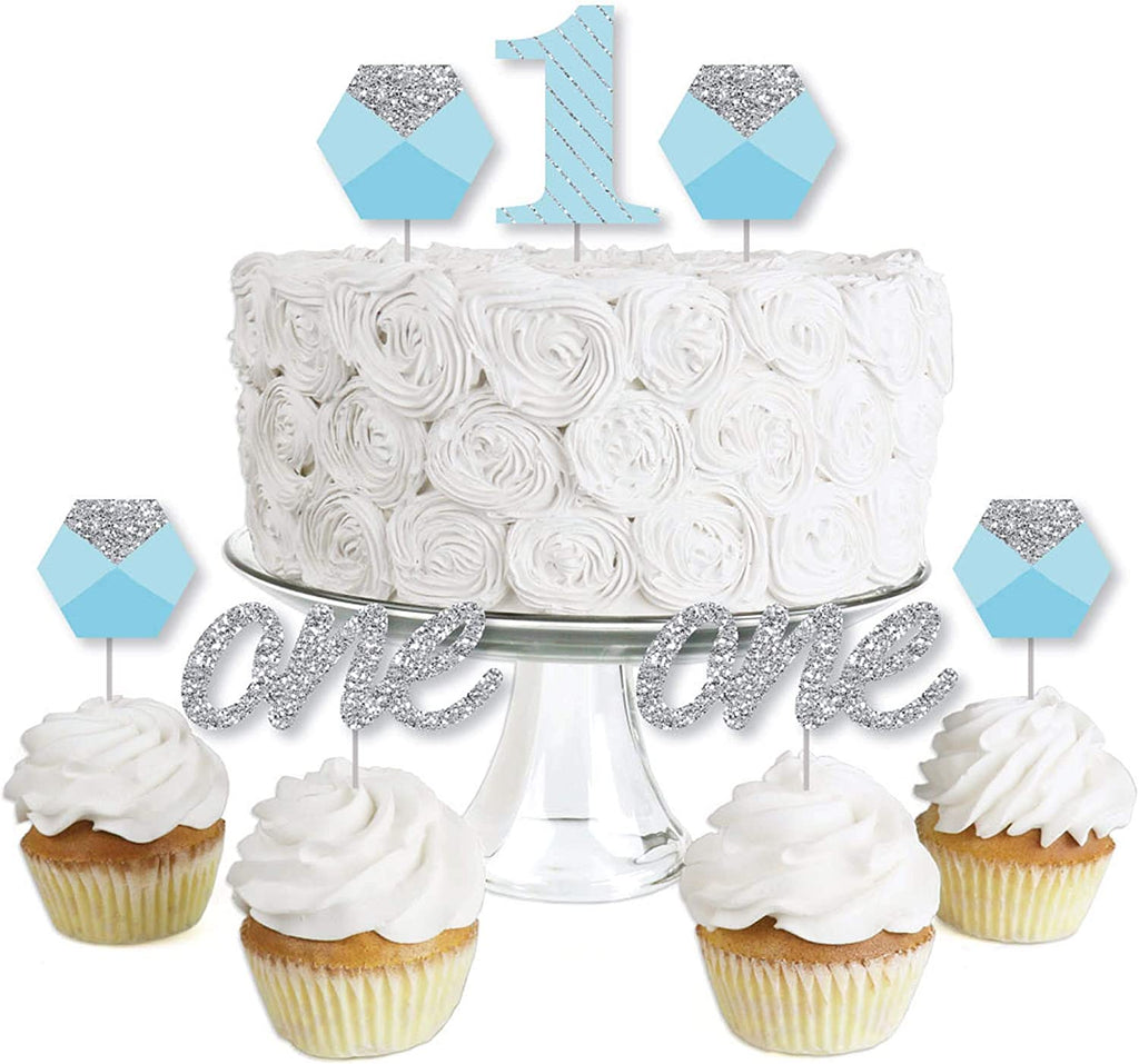 1st Birthday Boy - Fun to be One - Cupcake Decoration - First Birthday Party Cupcake Wrappers and Treat Picks Kit - Set of 24