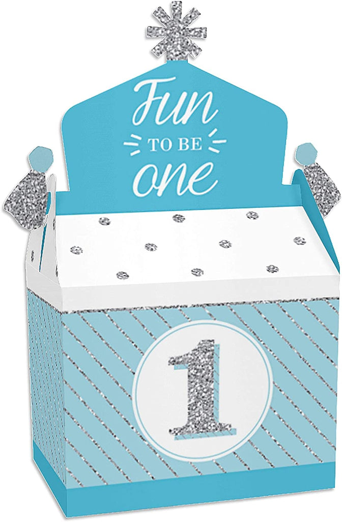 1st Birthday Boy - Fun to be One - Treat Box Party Favors - First Birthday Party Goodie Gable Boxes - Set of 12