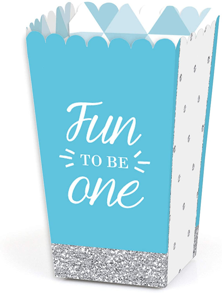 1st Birthday Boy - Fun to be One - First Birthday Party Favor Popcorn Treat Boxes - Set of 12