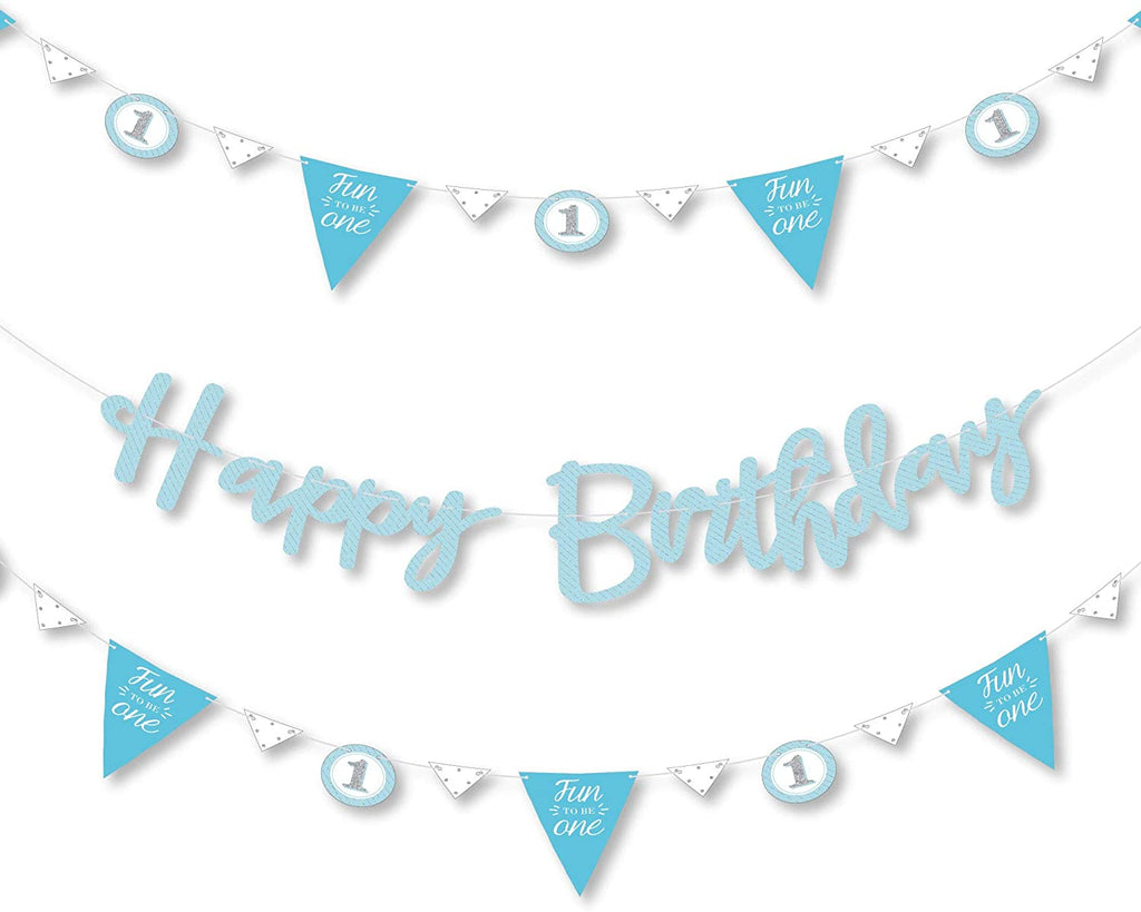 1st Birthday Boy - Fun to be One - First Birthday Party Letter Banner Decoration - 36 Banner Cutouts and Happy Birthday Banner Letters